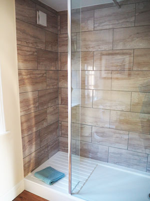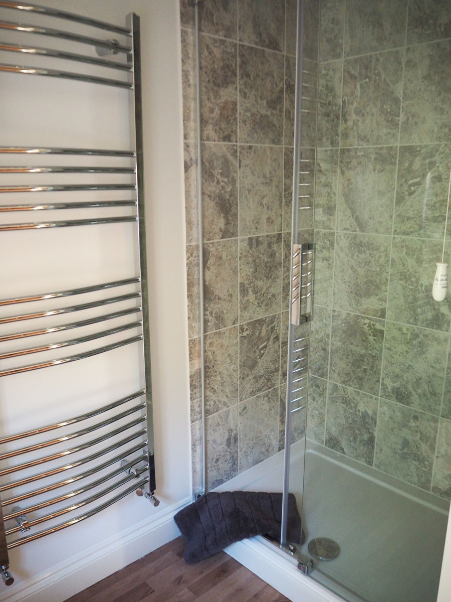 The master en-suite has a wooden floor and offers a large walk-in shower, toilet and full size washbasin. There is also a heated towel radiator and a mirror with both light and shaver.