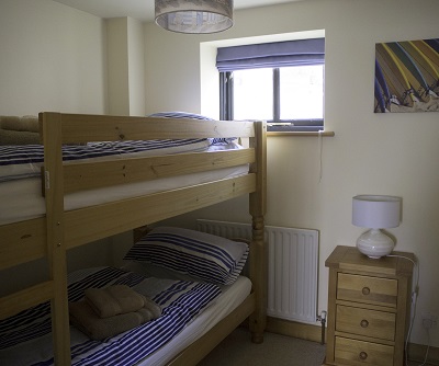 Bedroom 3: Full-size bunk beds and a large built-in wardrobe.