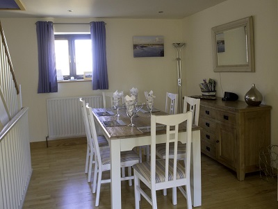 The dining area has a good-sized table to seat six.